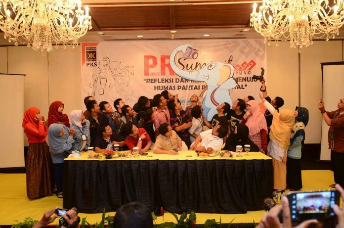 Beberapa peserta nampak asyik berfoto bersama gambar gajah yang menjadi maskot pada gelaran Public Relation (PR) Summit Partai Keadilan Sejahtera (PKS) Chapter Lampung 11-12 Oktober 2014 lalu. Gajah biru dengan kamera di belalainya itu menjadi primadona peserta untuk berfoto bersama sepanjang PR Summit berlangsung.